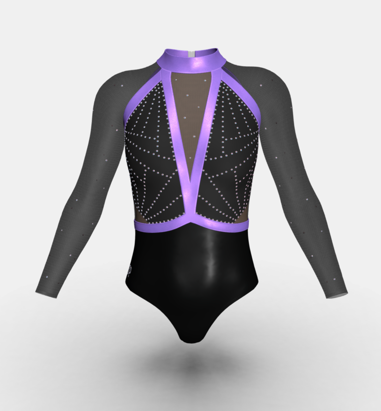 The Nora design combines spectacular craftsmanship with main character energy to amp up the competition floor. The high neckline with contrast colour collar & panelling creates a dramatic, yet modern design aesthetic. The waistline is accentuated with angular mesh panels & dynamic detailing. The back features a clasp & keyhole for ease of movement with the addition of mesh panels & contrast colour straps. The crystals create a style statement as they have been crafted to spray like fireworks through the front upper bodice. Cut from a combination of our matt lycra through the upper bodice, sumptuous wetlook fabrication through the lower, mystique binding and applique & finished with mesh sleeves & body panels. The front of this leotard is fully lined for complete athlete comfort with all mesh body panels fully lined with skin lining for zero transparency.