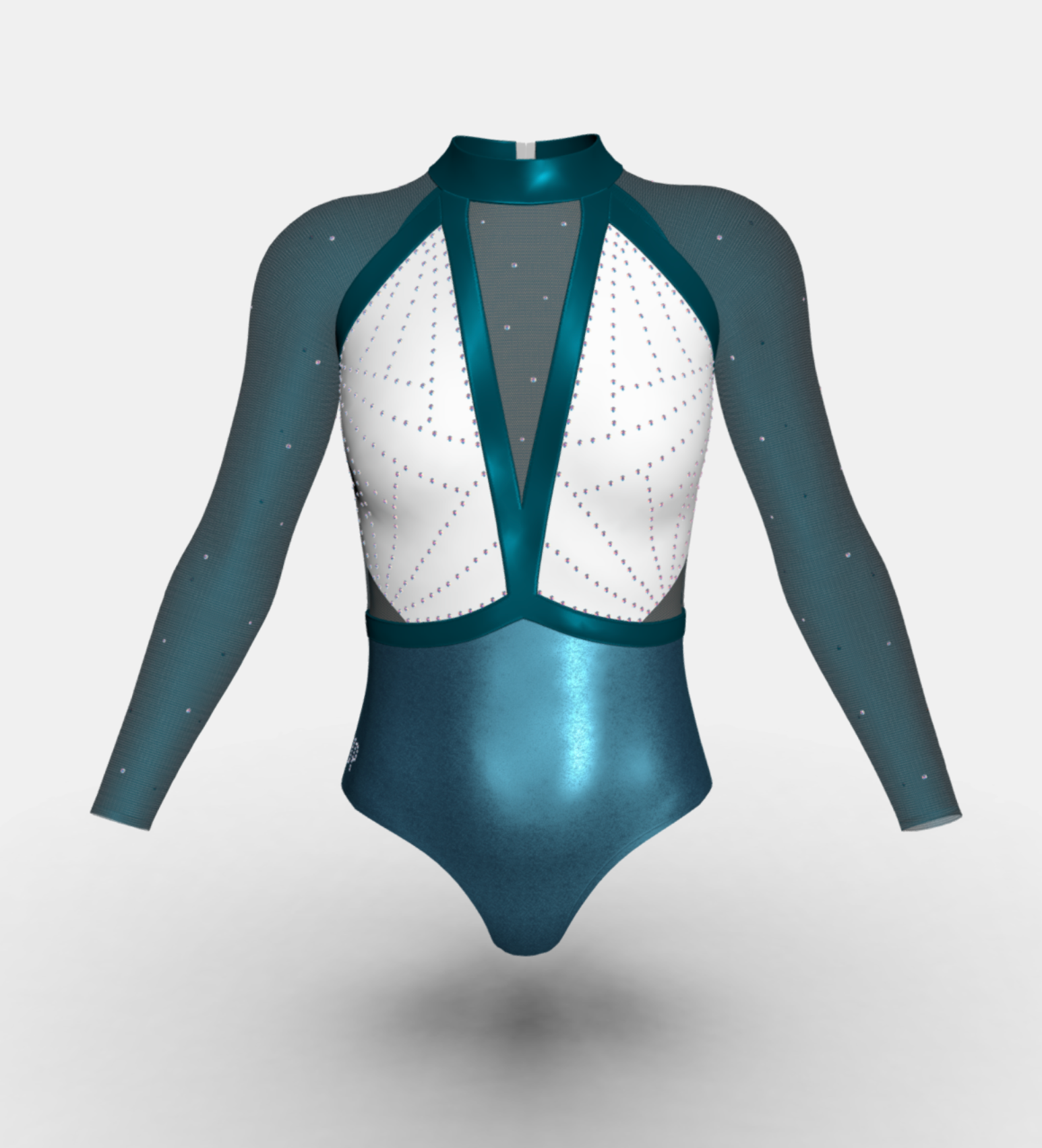 Change the fabrics, colours and crystals of this leotard using StudioSP, our 3D product designer.