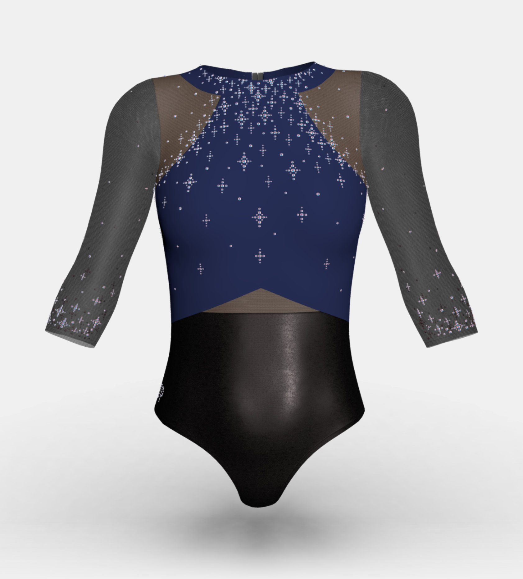 Mystical and opulent—the Omari design has been inspired by the night sky, forever sparkling. Styled in a new high neckline with a set-in neckband for athlete comfort and clasp at the back neck for easy movement on the floor.