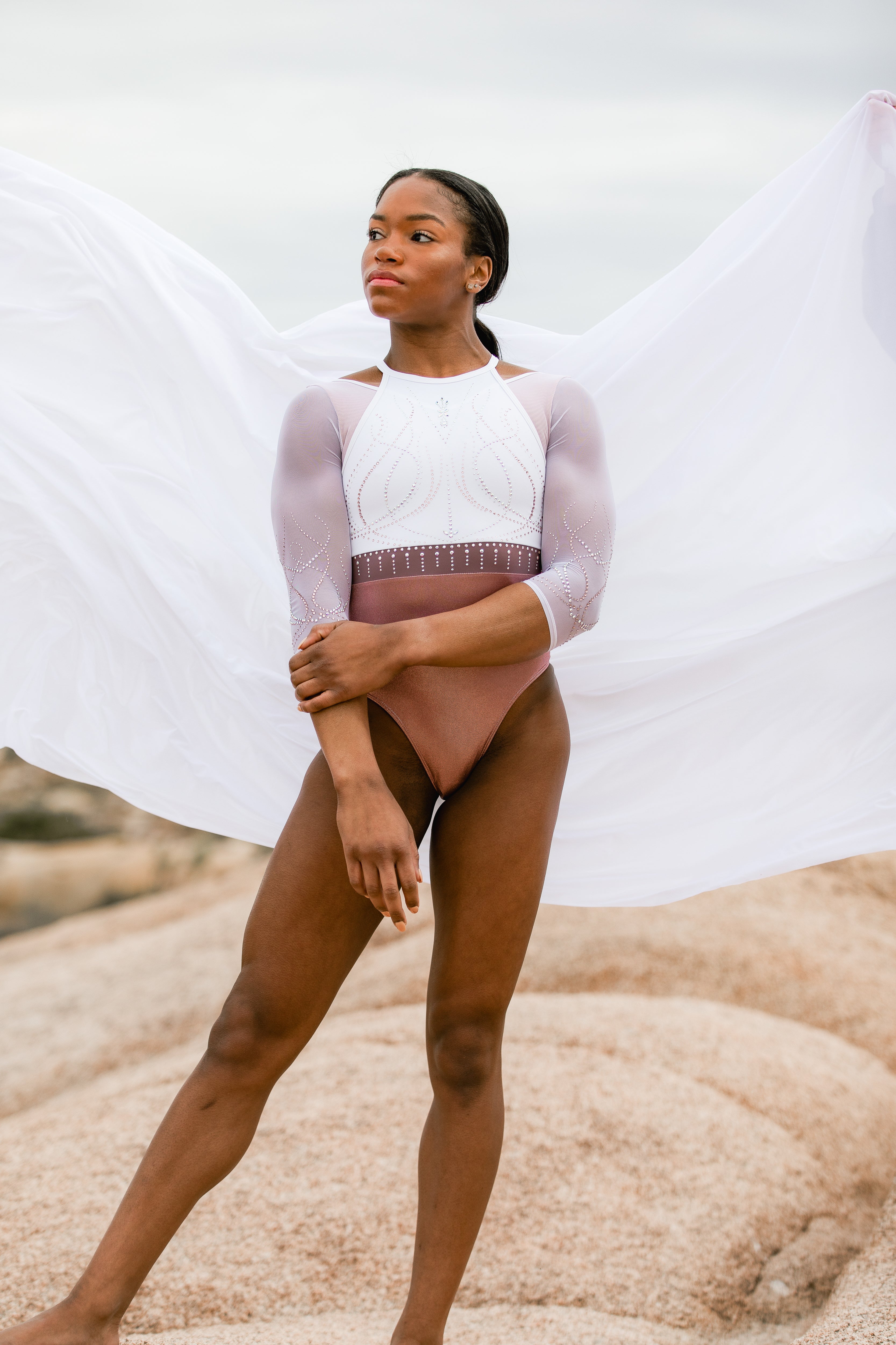 Change the fabrics, colours and crystals of this leotard using StudioSP, our 3D product designer.