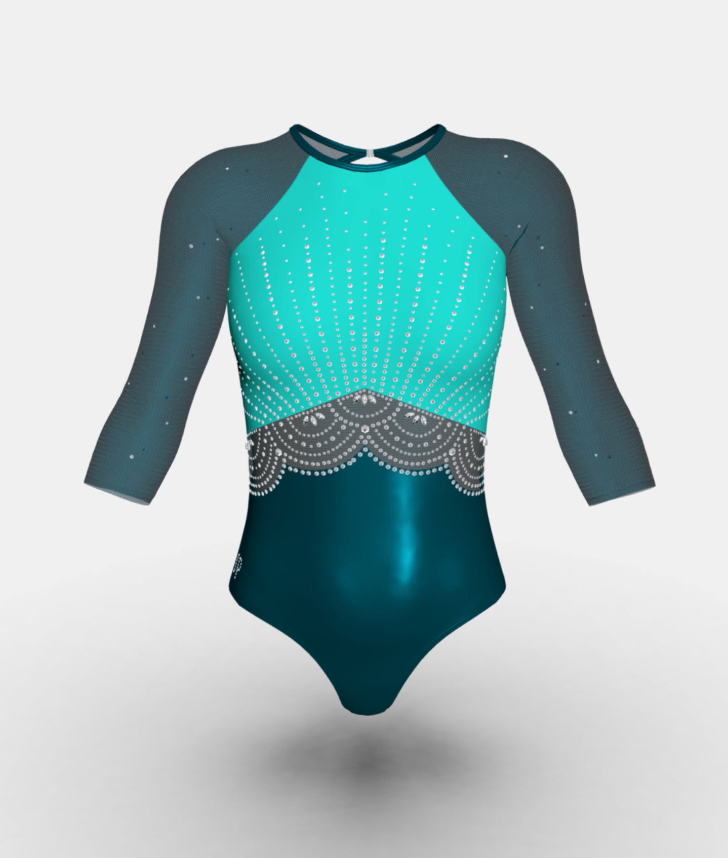 Inspired by some of Maggie Nichols most favorite competition leotards of all time – she wanted to show the world how your confidence can shine from the inside out. Crafted in a round neckline shape with back neck clasp and keyhole for ease of movement.