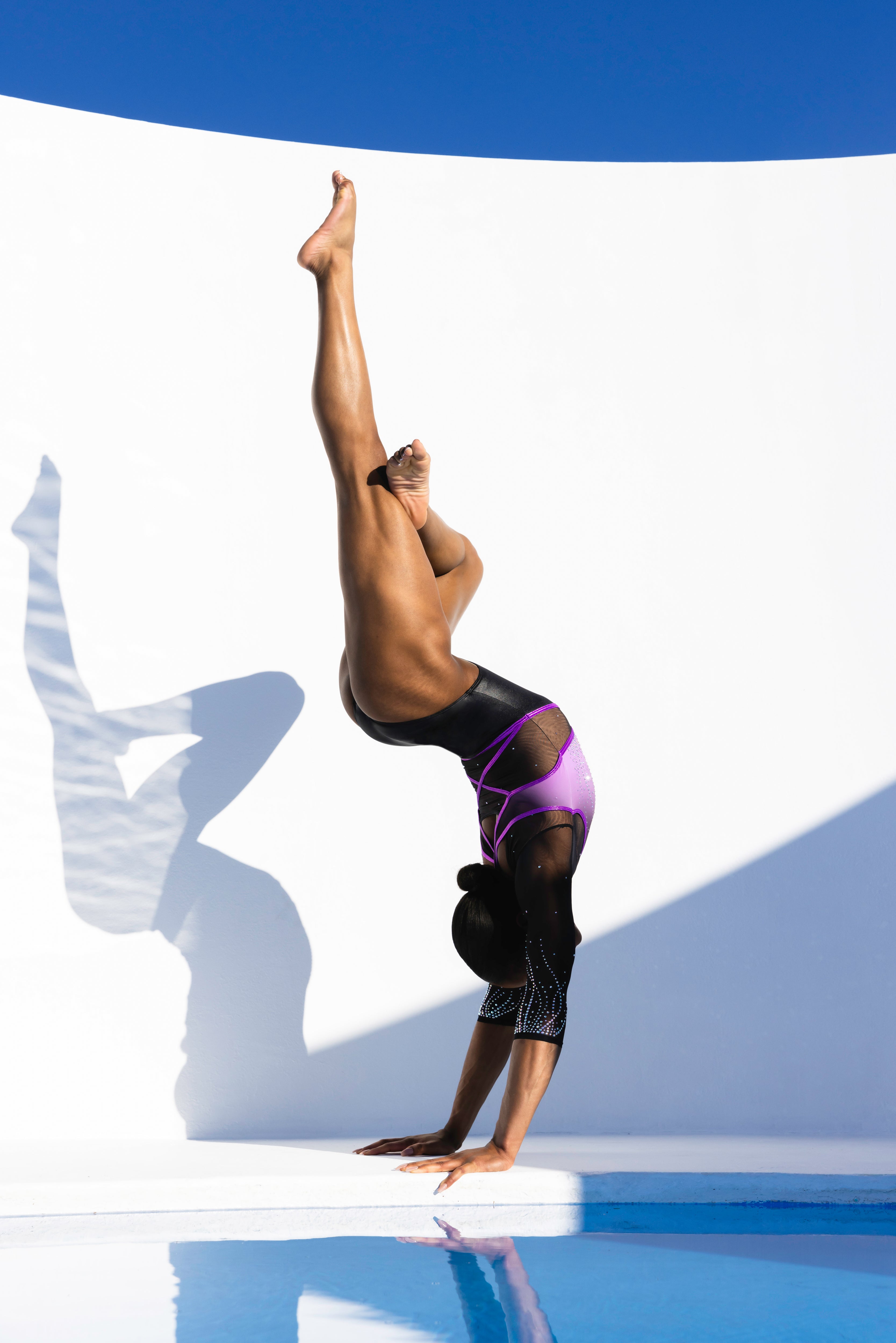 Energetic & daring—introducing the Harper design. Styled in a double-layer look with a mesh upper bodice underneath an athletically cut racer-style shape—this is a leotard shape reinvigorated for the modern athlete. A dynamically engineered criss-cross belt accentuates the waistline with mesh panelling & mystique embellishment while high-shine crystals delicately scatter out on the bodice & sleeves in a free-flowing mystic-inspired design.