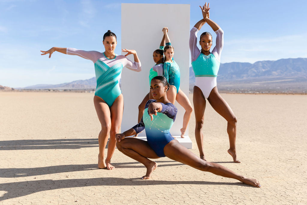 Inspired by Shilese Jones 2023 Championship’s leotard—the Pia design oozes style, elegance, and refinement. Styled in a classic couture shape with a twist, a V-neckline cuts through the front and back with a dance-inspired gathering detail at the back waistline. This design plays on textures, introducing our Diamond Mesh on the sleeves and mesh panels. It is a super soft and lightweight fabric with great stretch. Clear crystals are the hero piece, creating fascinating icicles of stones drifting down the body and sleeves, scattering on the back. Embellished with crystals by Swarovski®.