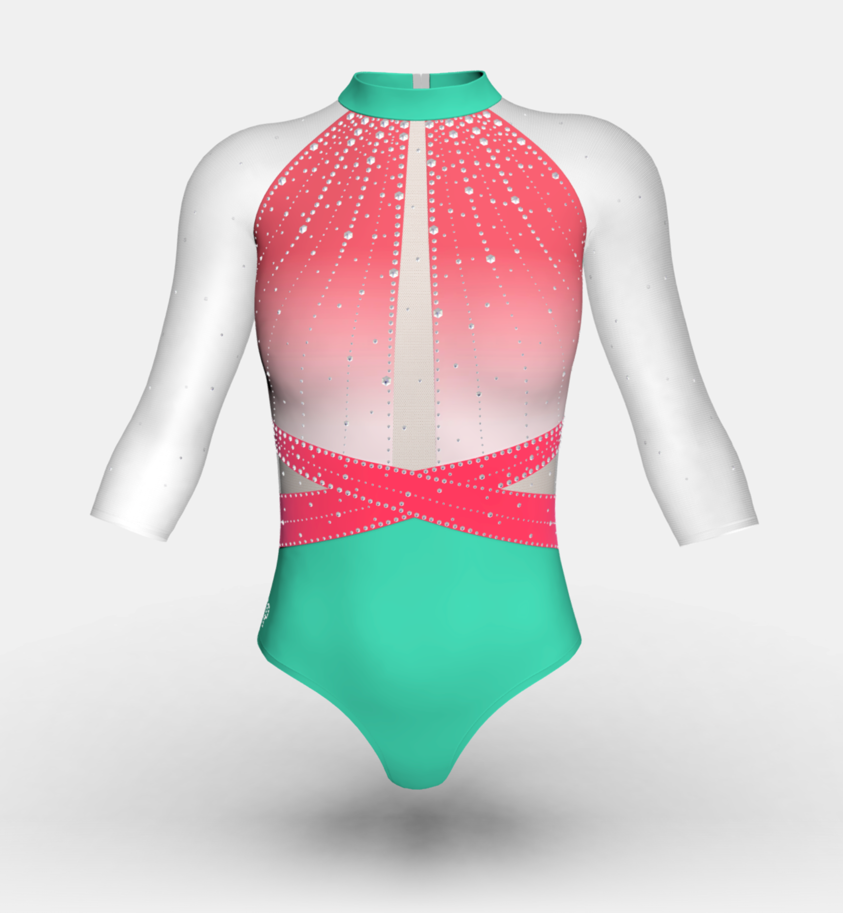 Change the fabrics, colours and crystals of this leotard using StudioSP, our 3D product designer.