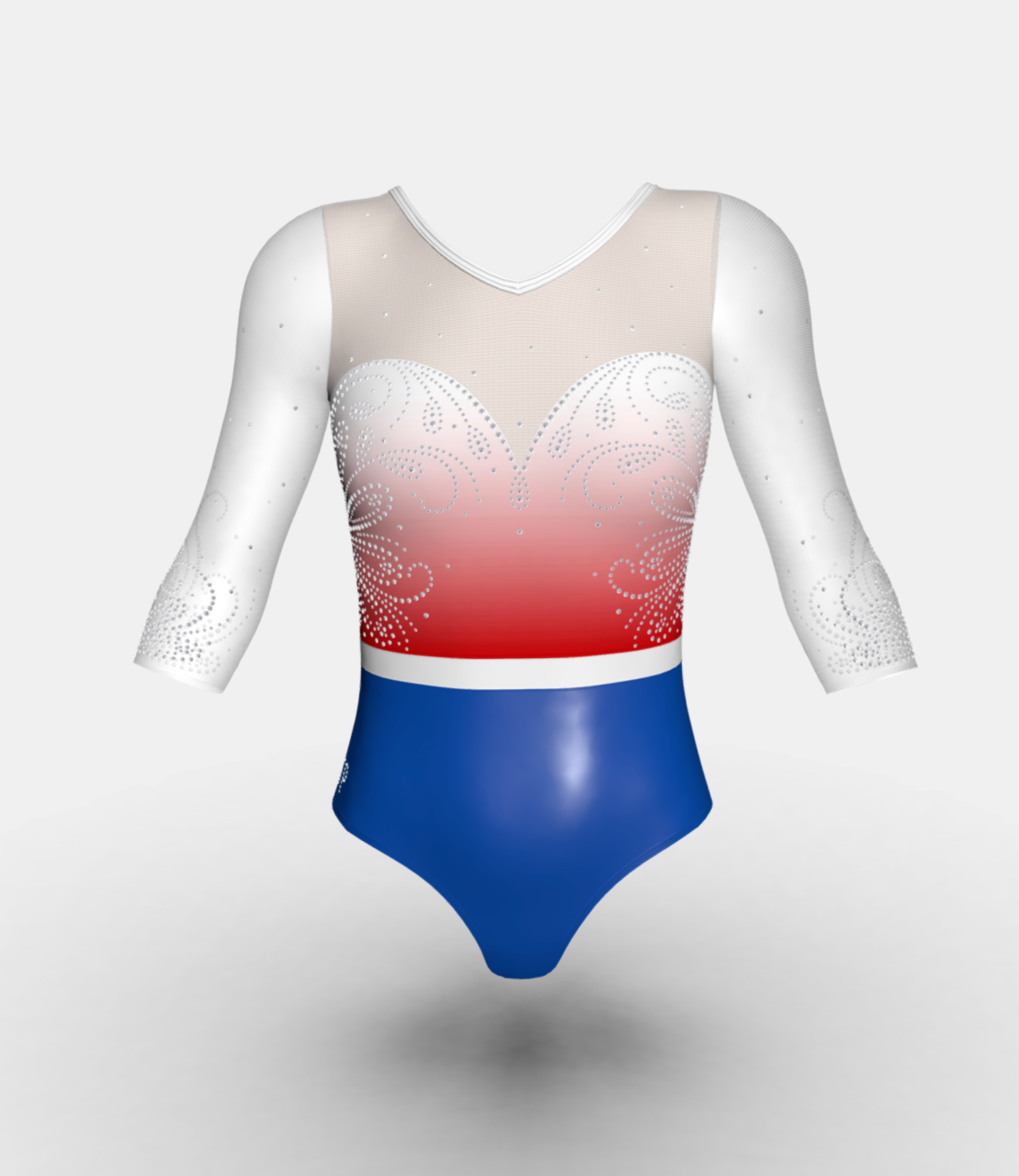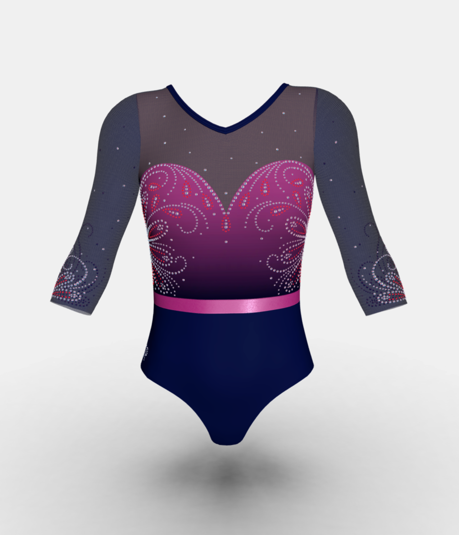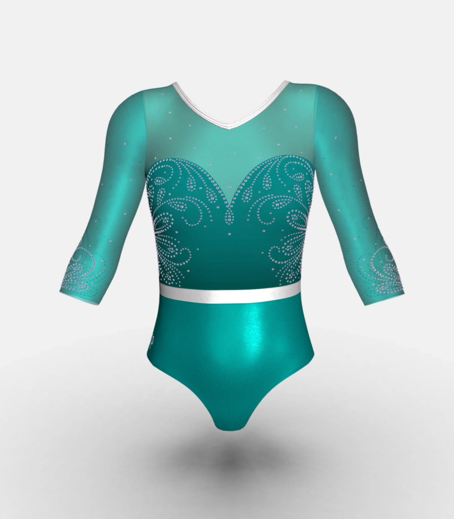 Change the fabrics, colours and crystals of this leotard using StudioSP, our 3D product designer.