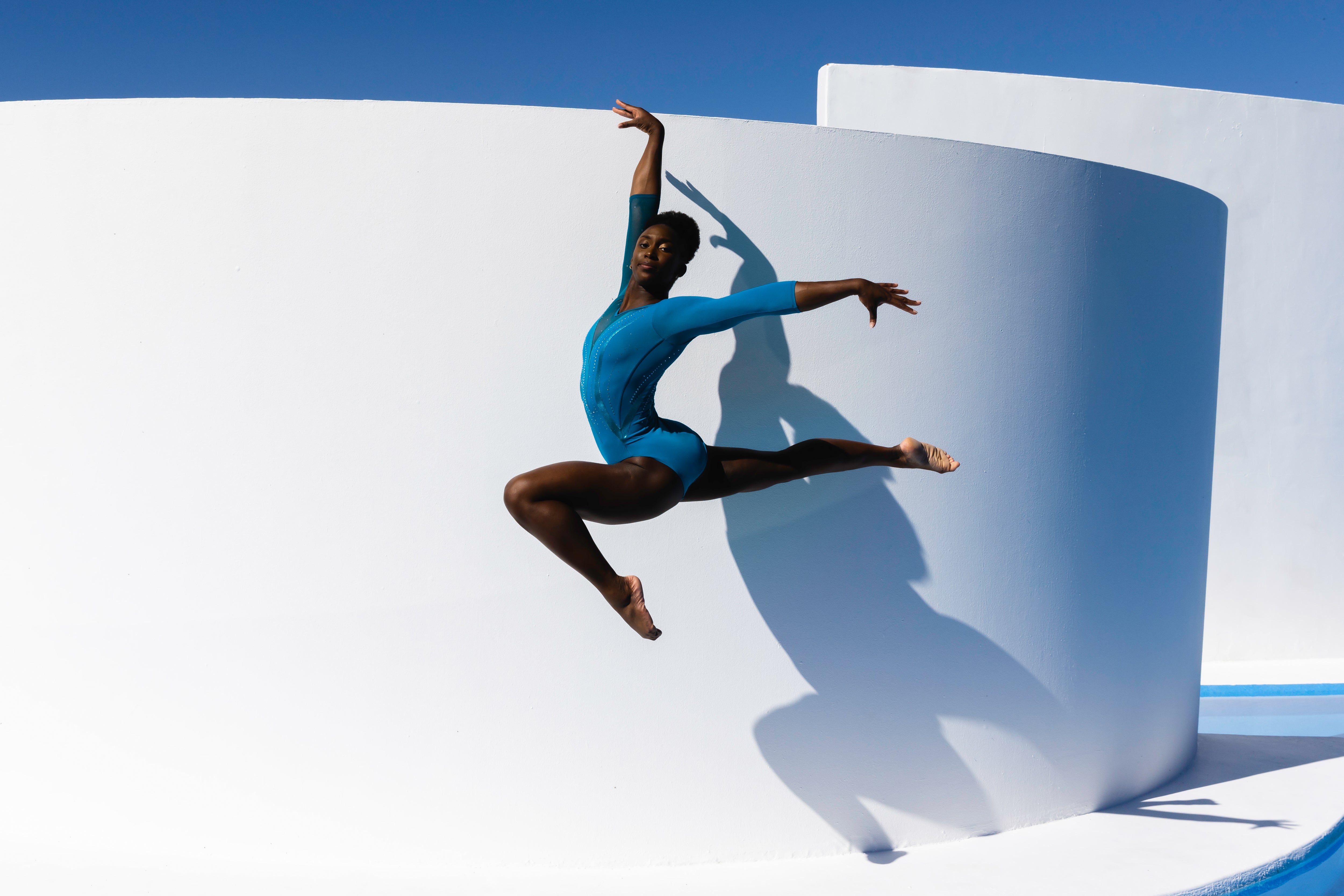 Transform on the floor in the Lori design. Styled in our signature front & back V-neckline silhouette, our hyper-shiny mystique embellishment flows across the body in an asymmetric shape. A delicate spray of crystals cascades down the body, flowing with the panel lines. Cut from our classic matt lycra fabrication allowing great stretch & durability, with mesh sleeves & upper panels. Each sleeve is cut from a different fabrication—one matt lycra, one mesh—leaning into asymmetric aesthetic. The leotard front & all mesh body panels are fully lined for complete comfort with skin lining for zero transparency.