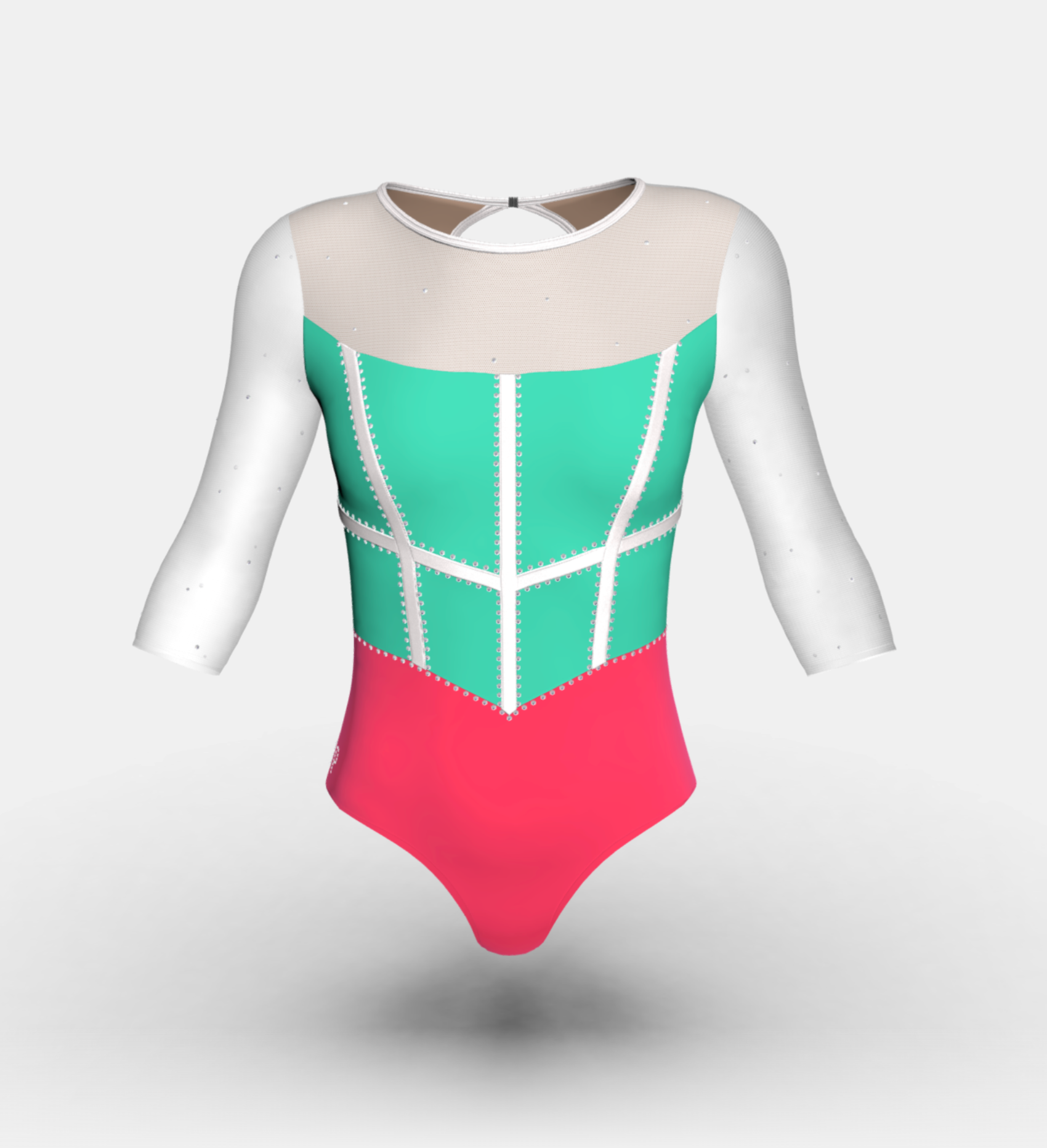 Change the fabrics, colours and crystals of this leotard using StudioSP, our 3D product designer.