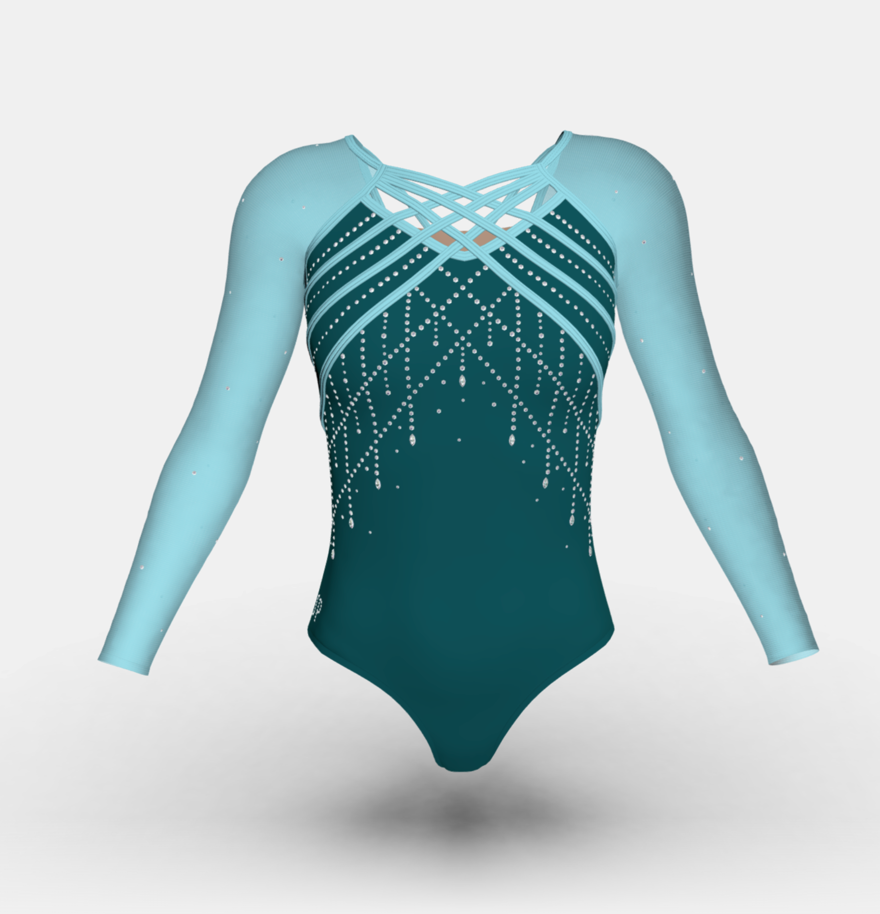 Change the fabrics, colours and crystals of this leotard using StudioSP, our 3D product designer.