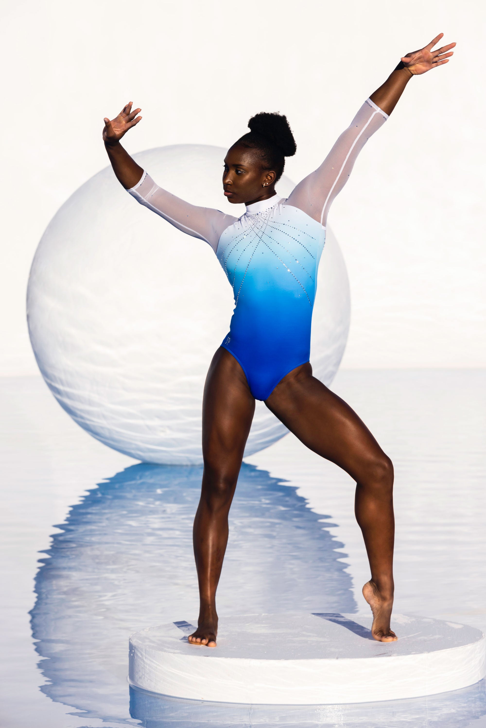Change the fabrics, colours and crystals of this leotard using StudioSP, our 3D product designer.