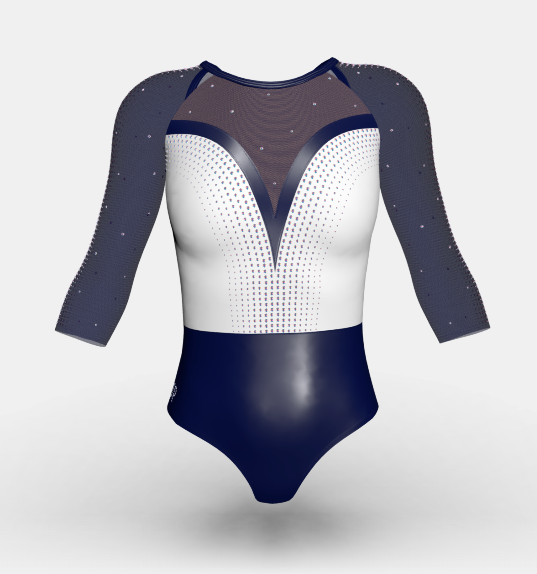 Change the fabrics, colours and crystals of this leotard using StudioSP, our 3D product designer.